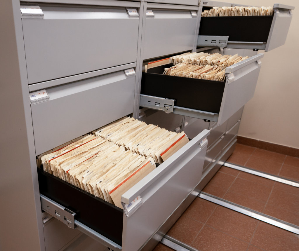 Картотеки для хранения документов от А6 до А4. В конструкции применяются ящики с разделителями или с подвесными файлами